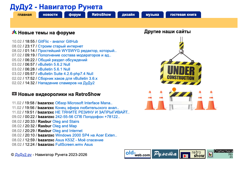 Попробуем восстанавливать старые сервисы: функционал + похожий интерфейс. Такие сайты будут работать на поддоменах oldnet.su В ближайшее время будут созданы сайты letitbit.oldnet.su, retroshow.oldnet.su. Эти сайты уже работают по адресам upload.dudu2.ru и retroshow.dudu2.ru. Сайты будут работать по двум адресам как зеркала. Уважаемы пользователи форума! Вы тоже можете поучаствовать в реконструкции старого интернета. Пишите свои идеи и мысли по этому поводу. |