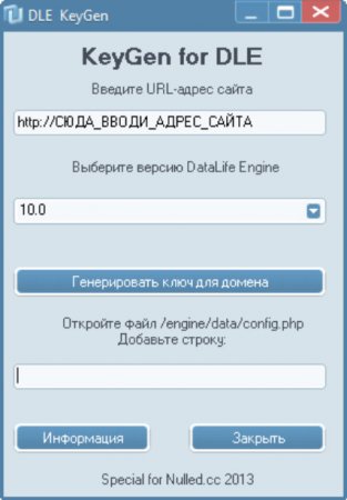 С помощью этой программы можно сгенерировать ключ для не взломанной версии. Мы не будем выкладывать взломанные версии на scripter, качайте здесь чистые версии и подбирайте ключ через эту программу. Дело в том, что в nulled версиях DLE могут быть внедрены ссылки сторонних сайтов и вещи похуже. На нашем сайте можно найти чистые версии DLE. Скачать кейген: http://letitbit.old-web.com/download/dle-keygen-do-10.0 |