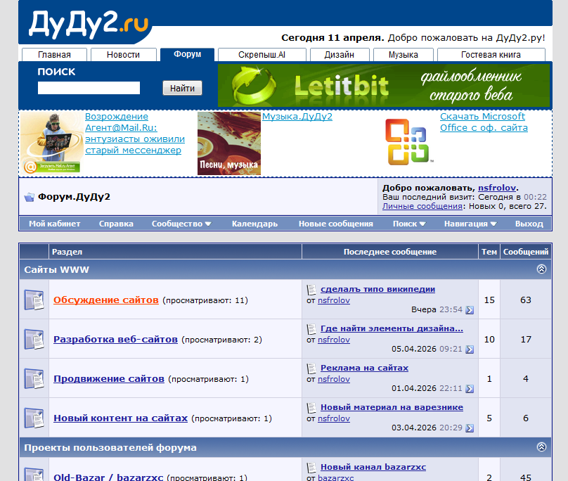 | Обсуждение ДуДу2.ру Идеи, предложения и публичная критика проекта |